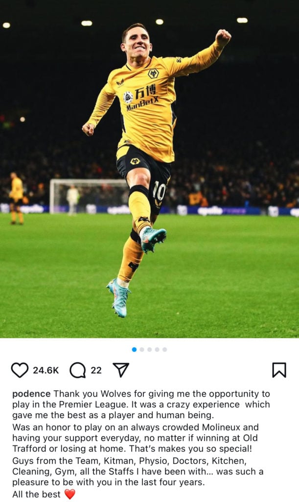 Upon learning that the winger’s move was complete, Wolves fans were shocked at Podence’s decision to begin to post his farewells on social media.