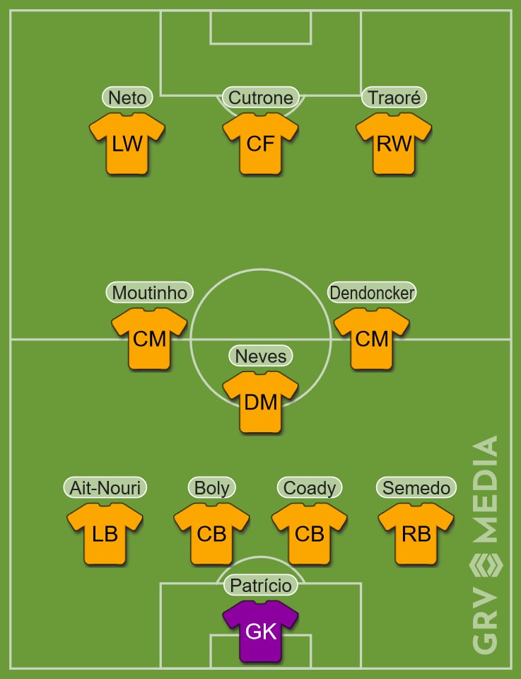 Up front, fans will hope for Pedro Neto to provide a spark as he usually does, and that Adama Traore, 24, will have recovered from his hamstring issue that ruled him out against Everton.